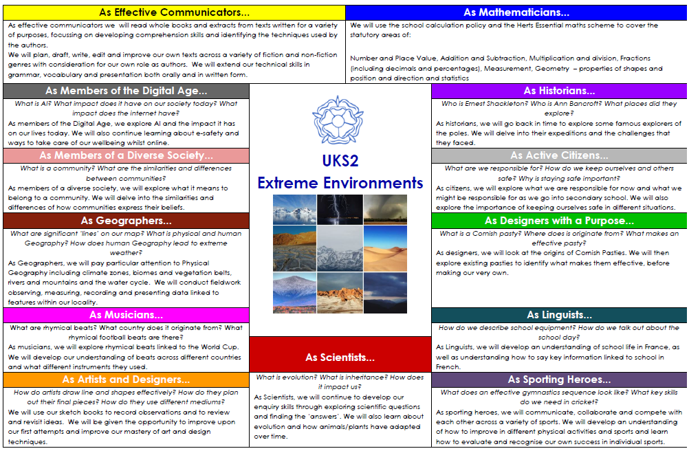 This term, we will be going on a journey to different extreme environments around the world, from the harsh, desolate lands of the Sahara to the humid, vast lands of the Jungle. Along the way, we will learn about famous explorers and their expeditions to these places. What a journey we are going to have!