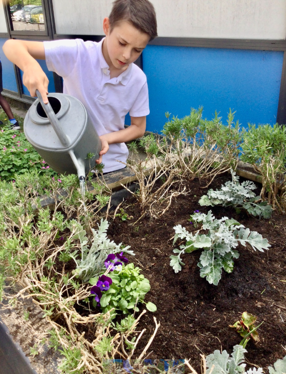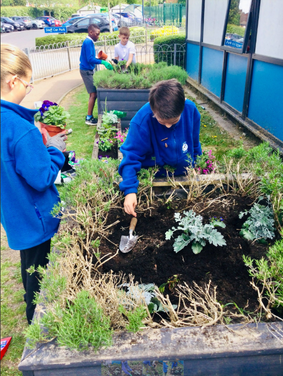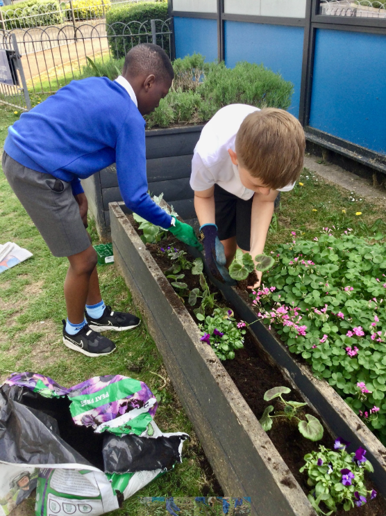 May 2025 - Our Y5 Tudor Owls helped with the planting of new flowers which are red, white and blue themed for VE day.