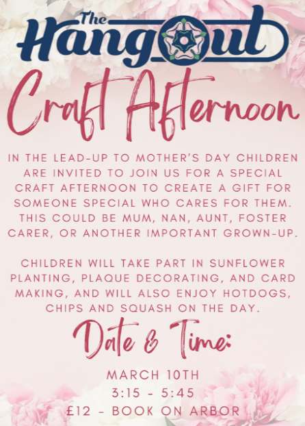 Hangout- our after-school provision is POPULAR- There are lots of well-planned activities and the feedback is SUPER. The special events have been incredibly well-received and the team will be offering a Mother’s Day Craft Afternoon on March 10th.