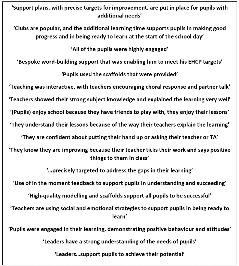 Our last newsletter shared some wonderful feedback from a county advisor. When schools receive such important ‘inspection’ visits, we really hope that they recognise the positive work that is going on at Tudor. Throughout my time as headteacher at Tudor I have been keen for as many ‘outside’ eyes as possible to look at our provision as we must always keep growing, progressing and evolving as a school to meet the needs of our community. An enhanced focus for all schools in Hertfordshire (and nationally) is how we support our most vulnerable pupils (and families). Tudor Primary remains well regarded in this area and the report that we have just received from the school effectiveness team further evidences this. The comments below make incredibly pleasing reading.