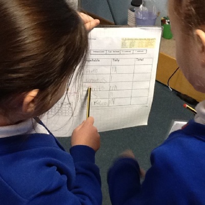 In Science, we tried to find a stretchy material that could be used to make a coat for Dug the dog. It had to be stretchy so that he could still jump and turn to catch a tennis ball.