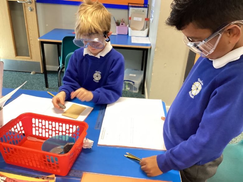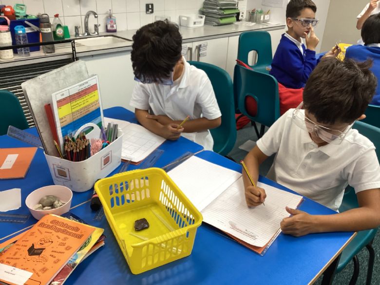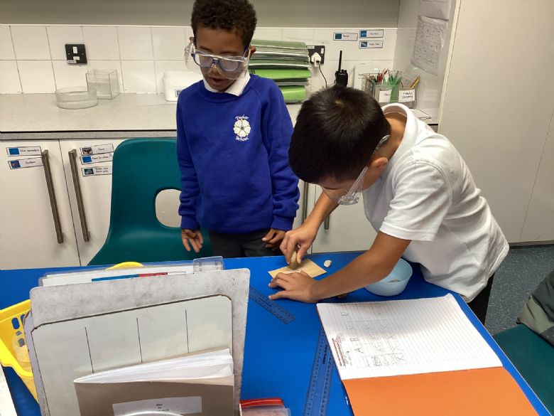 After observing our rocks, we spent time thinking about the properties of rocks. We had to find out if they were hard, if they absorbed water or if they could float.