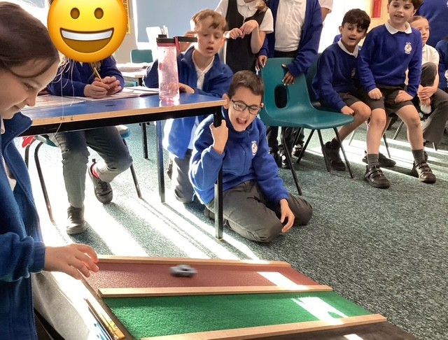 We take science very seriously in Year 3, so when we were trying to figure out what surface would be easier for a push force to go over- we had to test it out.