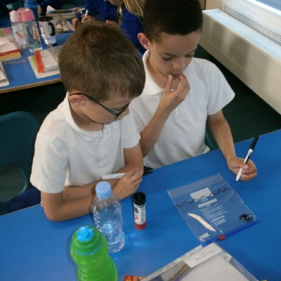 Using a water cycle in a bag of course! First, we learnt all about the different stages of the water cycle. Then, we drew our water cycle onto a plastic bag using our whiteboard pens. Next, we poured in some blue water and sealed the bag shut using sellotape. Finally, we stuck our water cycle in the sunlight on the window. Now we can wait and see how it changes throughout the day!