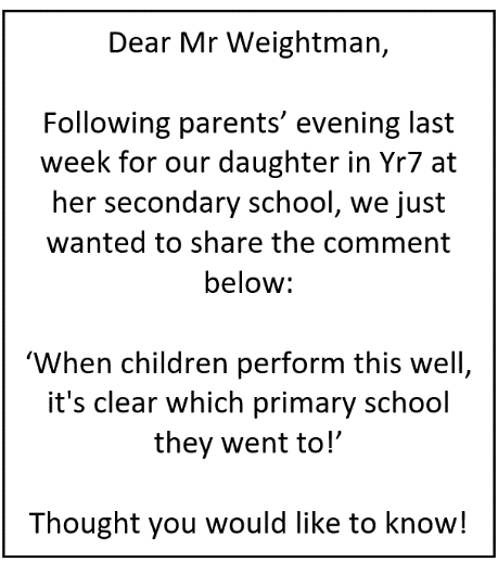 Since the last newsletter, our amazing year 6 children were informed of the (initial) allocation of secondary schools. To see that 93% of our children got their FIRST-choice school is really pleasing. Whatever school they will be off to in September, we believe that Tudorites will set the right standards. Only last week we received an email from a parent of a child of an ex-pupil who is now in year 7.