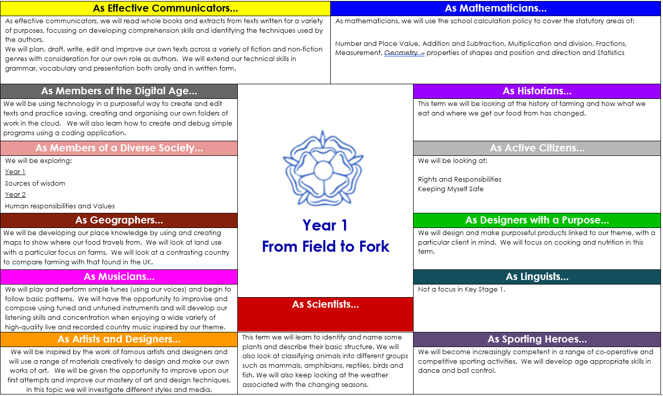 This term, within our ‘From Field to Fork’ theme, we will be learning about where our food comes from. In English we will be looking at books such as ‘What the ladybird heard’ and ‘The Scarecrows Wedding’.
