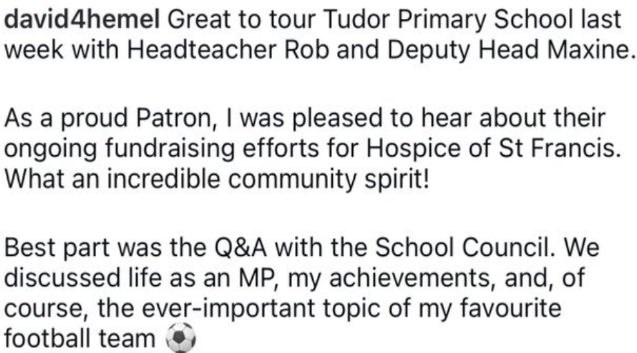 I shared the school meeting with the MP for Hemel Hempstead in our last newsletter. From an ever-increasing evidence base, our school is demonstrating that we really are ‘making a difference’ for our locality.